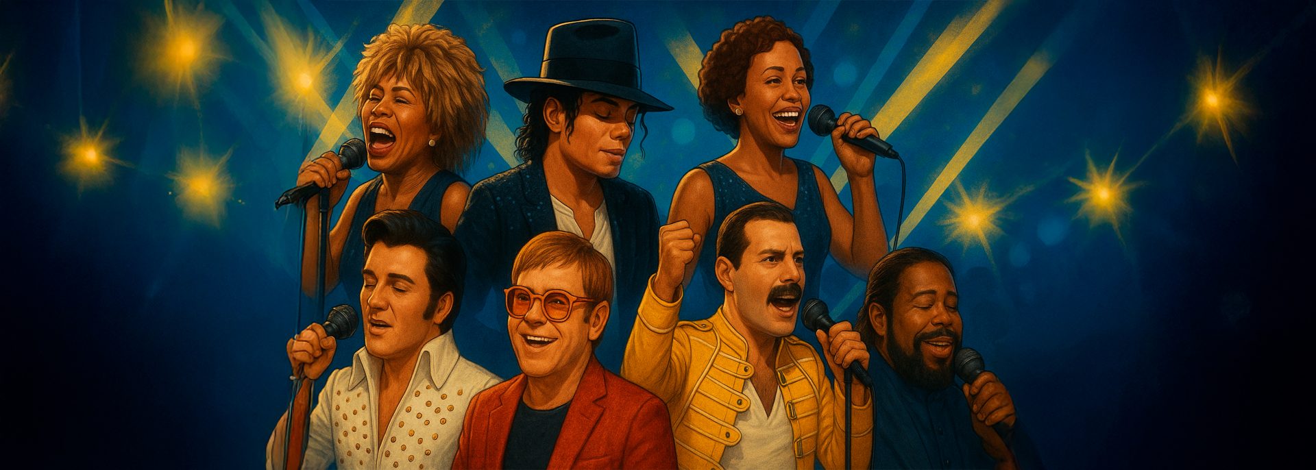 En nuestra sala rendimos homenaje a los grandes artistas de la historia con espectáculos tributo que reviven su música y su esencia en directo. Shows cuidados al detalle que combinan energía, emoción y nostalgia, ofreciendo al público la oportunidad de disfrutar nuevamente de clásicos inolvidables.